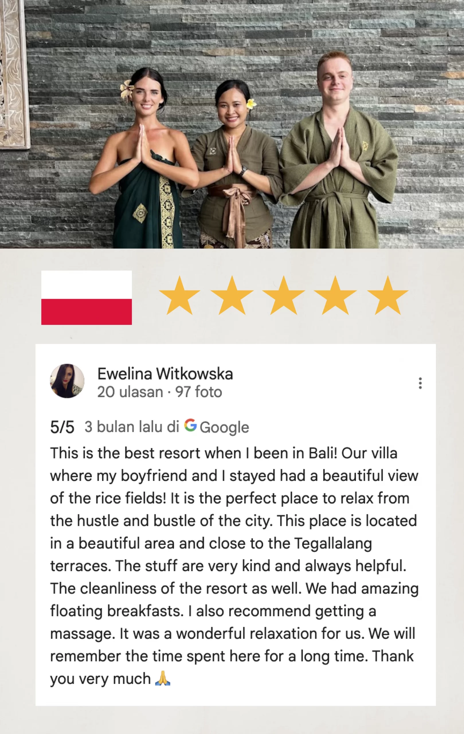 Telah menerima tamu mancanegara untuk memenuhi high-demand pengalaman autentik yang memadukan spiritual dan nature dalam sebuah resort
